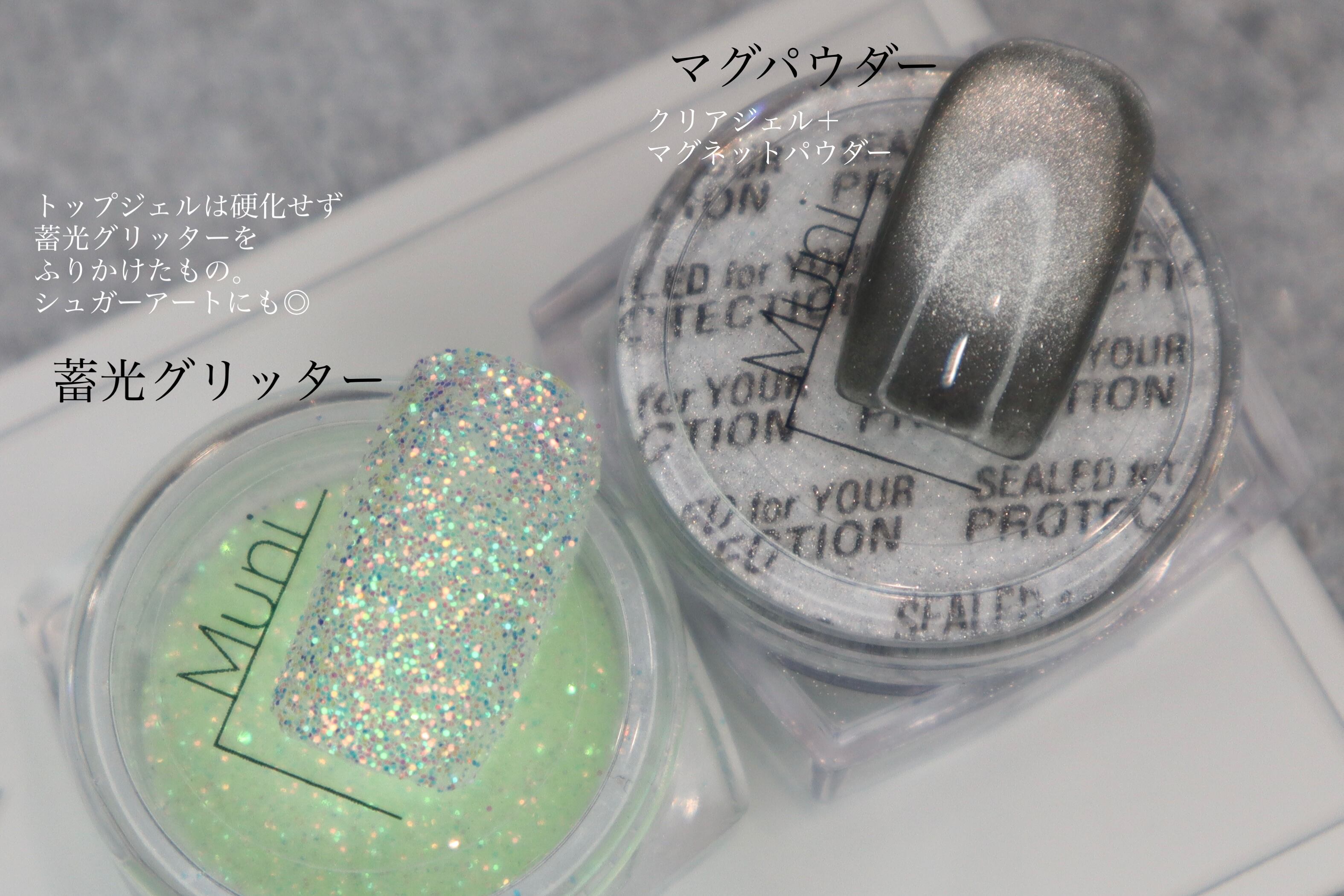 このセットには、蓄光グリッターとマグネットパウダーが入っています。